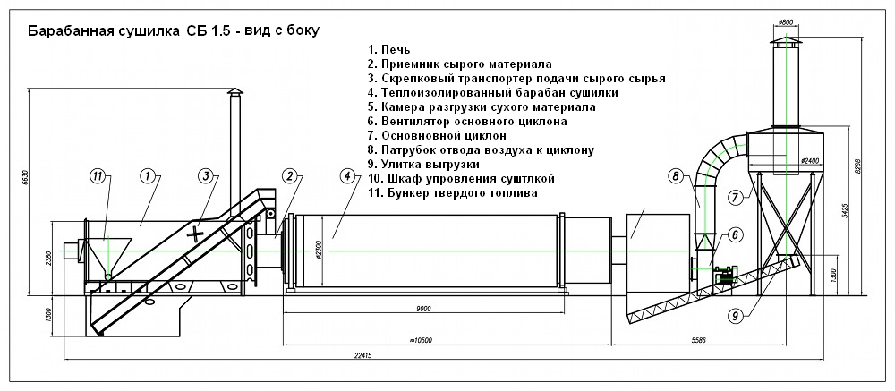 Общий вес сушилки с изоляцией из огнеупорной глины | 31000 кг |